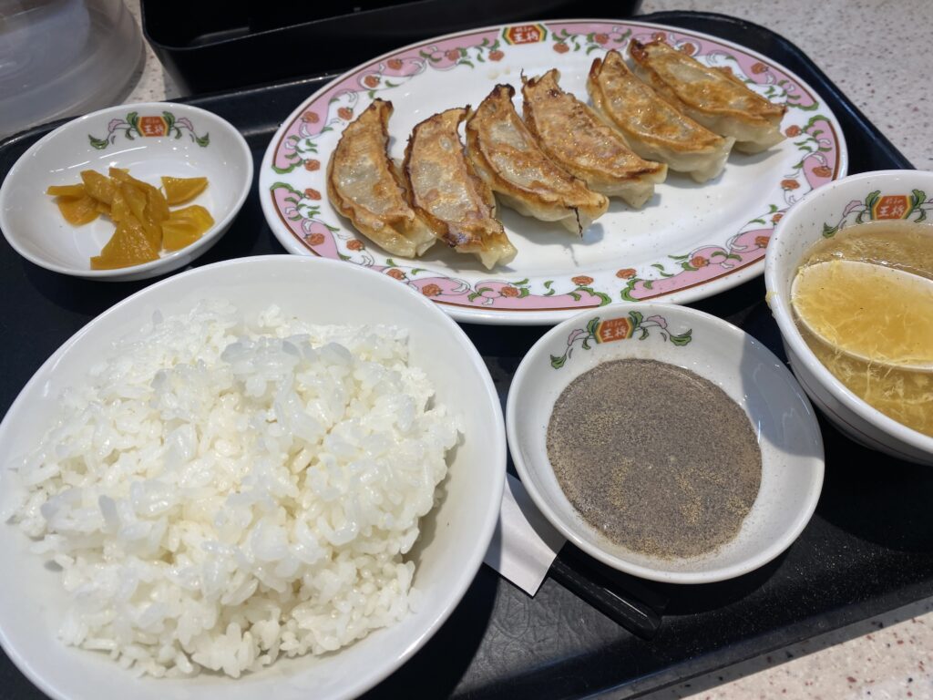 見てください、この食欲をそそるビジュアル!こんがりと焼かれた餃子がずらりと並び、つやつやのご飯、そしてスープ。まさに「餃子の王将」のランチセットです!